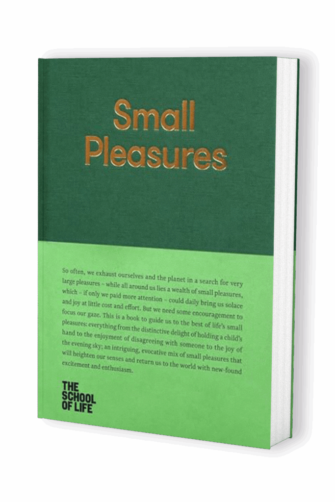 V době, kdy často vyčerpáváme sebe i planetu v honbě za velkými požitky, přichází kolektiv The School of Life s knihou „Small Pleasures“, která nás učí nacházet radost v malých, zdánlivě obyčejných věcech kolem nás. Místo honby za grandióznými zážitky nás autoři vedou k objevování bohatství drobných potěšení, která – pokud jim věnujeme pozornost – nám mohou denně přinášet útěchu a radost téměř bez námahy a nákladů.